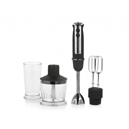 Potência: 1.000W. Proteção anti salpicos. 10 velocidades. Pega ergonómica. Copo graduado de 800 ml. Peças laváveis na máquina de lavar.